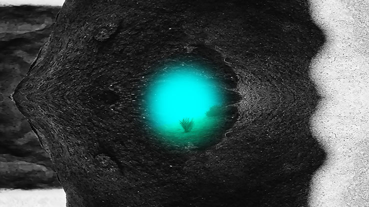 Visitors enter the gallery through a meandering tunnel, a porthole of sorts. Built intentionally to provide the audience with a transitional space, this area is a preamble of things to come and leads to the full installation. The omnipresent, immersive soundscape is composed of fieldwork recordings, some reinterpreted on the piano by extended techniques. Desert winds, the melodic rhythms of stalactites dripping in a cave, and piano versions of an earthquake on Mars and of radar echoes from Titan’s surface, all define the cosmic geolocation of the collective dreamworld.